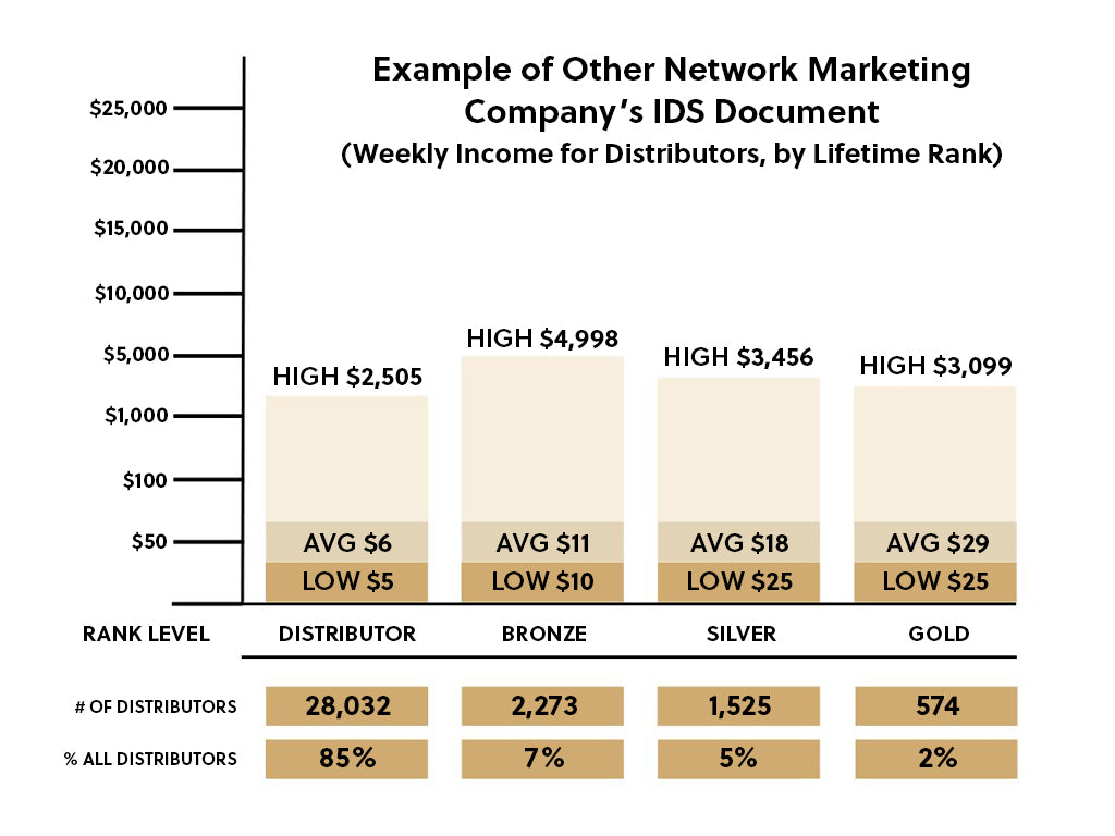 An Income Disclosure Statement (IDS) is a document that network marketing companies must have to disclose the earnings that participants can expect when taking part in network marketing. Here's an example of what you can typically find on an IDS for most companies (the chart to the right).