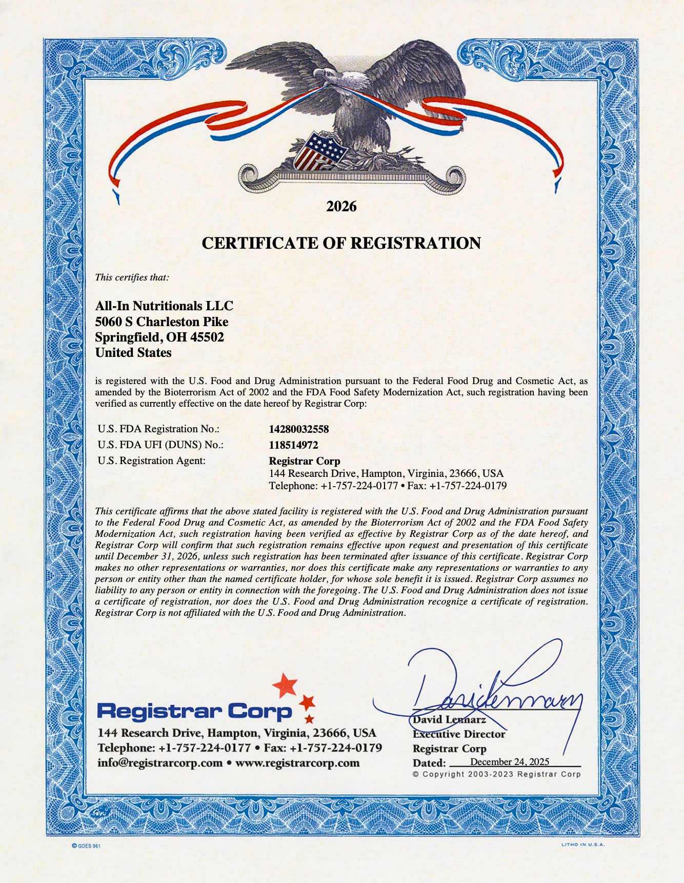 We're raising the bar for the natural, supplementation industries here, at All-In Nutritionals, and wouldn't have it any other way.